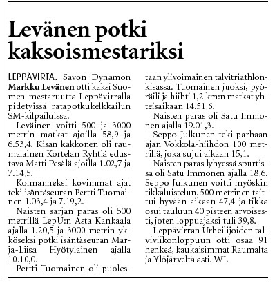 Hiihto: Samu Miettinen Warkauden Urheilijat, jalkapallo: Eetu