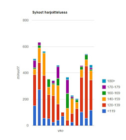 PK2:lla harjoittelun sykkeet jakautuivat alla olevan kuvan mukaisesti.