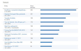 Kirjoitusten taso ja kijotusviheiden määrä on vaihdellut, mutta sivustot ovat saavuttaneet tason joita seuraa 50-70 asiasta kiinnostunutta päivittäin. Tähän mennessä sivuille on tehty yli 27 000 vierailua, esimerkiksi kesäkuussa vierailuja oli 1672. Kiitos Teille! (Huom! Omat käyntini ovat blogattu pois tilastoista.)