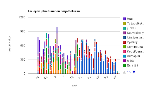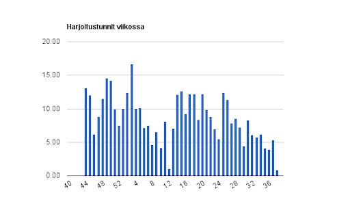 Kaaviossa näkyvä Muu harjoittelu koostui lähinnä viikottaisesta sählystä tai sulkapallosta.
