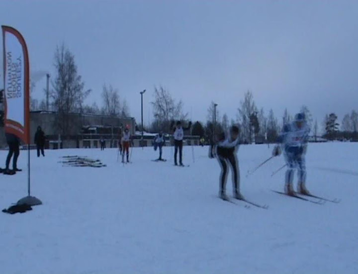 Kävin tänään Joroisissa osallistumassa tapaninpäivästä siirtyneisiin yhdistelmähiihtokisaan. Hiihtäjillä oli matkana perinteistä 3km + vapaata 3km. Kisa tapahtui yhteislähdöllä ja minä lähdin hiihtäjien perään potkukelkalla.