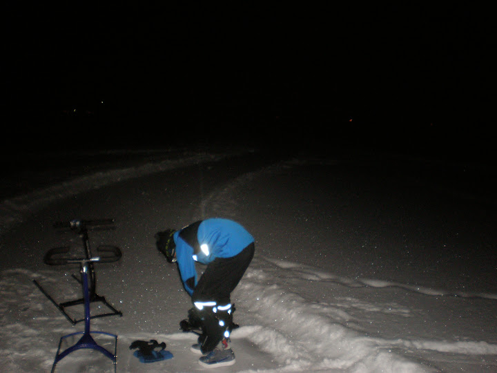 Sain vähän etumatkaa kun koiraa hidasti lumipenkka, mutta pian se oli aivan perässäni. Kun se oli parin metrin päässä takani käänsin otsalamppuni (1600 lumenen "valonheitimen") sitä kohti ja aloin huutaa kun viimeistä päivää. Tällä tapaa sain koiran pysähtymään ja onneksi helpottava alamäki oli seuraavaksi edessä.