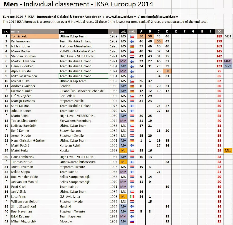 | MEN - IKSA Footbike Eurocup Endurance 22,5 km | 2014, Finland | ||||||||