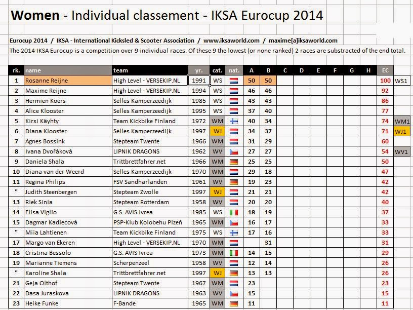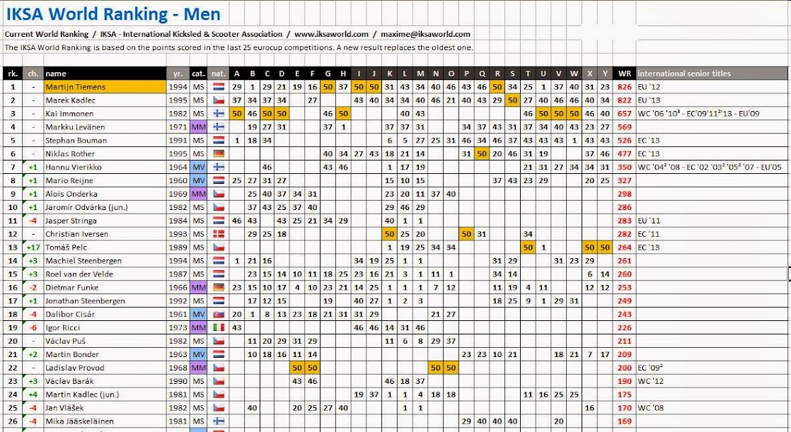 The IKSA World Ranking is based on the points scored in the last 25 eurocup competitions.